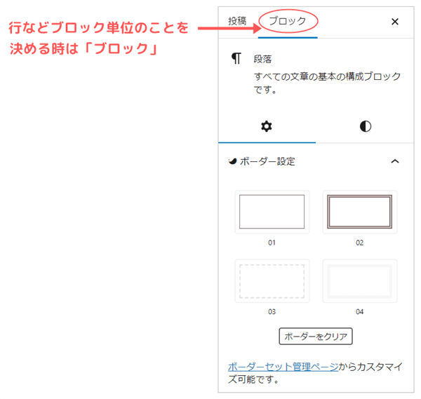 「ブロック」タブは記事の一部を装飾する時に使います