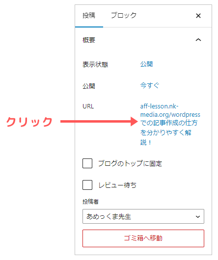 実際にパーマリンクを入力しましょう。