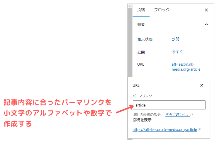 パーマリンクとは記事のURLの最後に来る部分ですね。