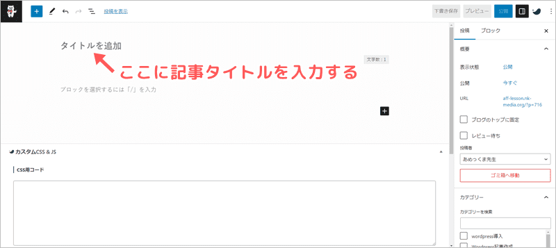 • 記事タイトルを入力(中央上)