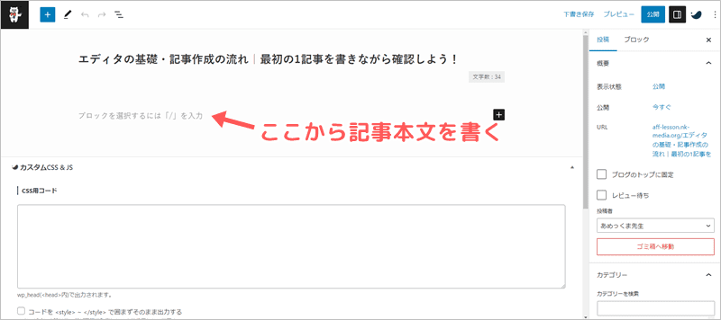 エディタの基礎・記事作成の流れ|最初の1記事を書きながら確認しよう!