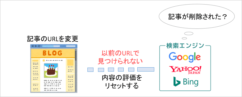検索エンジンからの評価は時間をかけてじっくり高めていくので、パーマリンクの変更はハイリスクとなります。