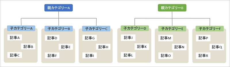 親カテゴリーを複数にして、ジャンルを広げていくイメージです。