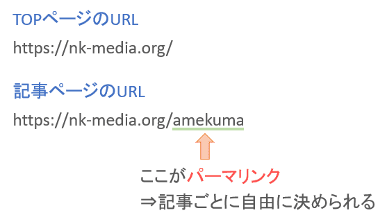 パーマリンクは記事ごとに自由に決められ、記事のURLの一部となります