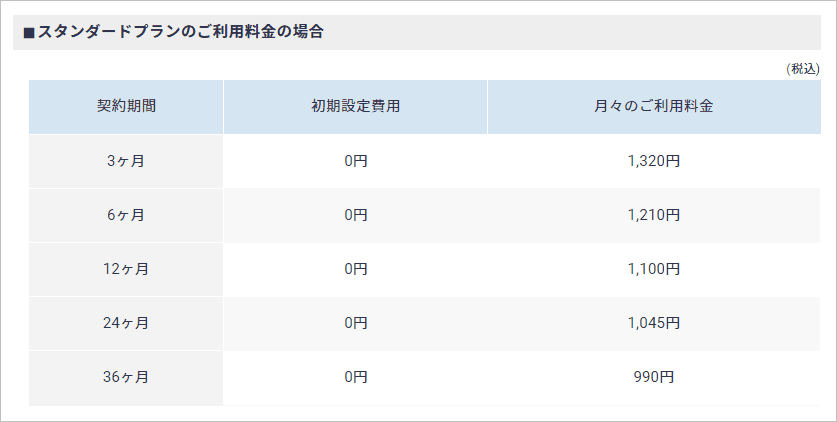 なお、月額換算の料金は契約期間が長いほどお得です。