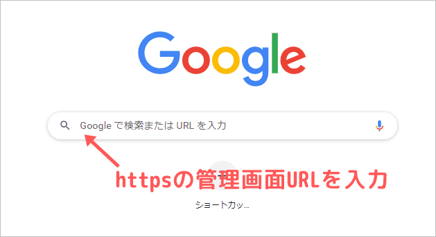 例えばGoogleChromeの場合なら、👇のように「https」の管理画面のURLを入力しましょう。