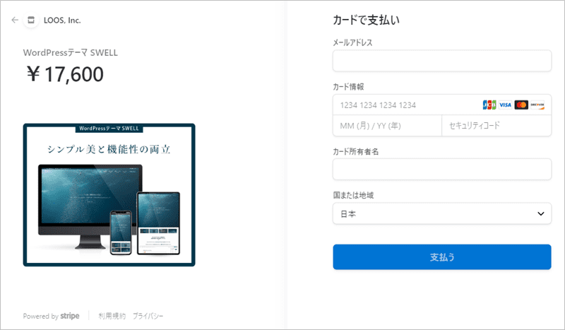 カード情報入力画面が表示されるので、支払いを行いましょう。