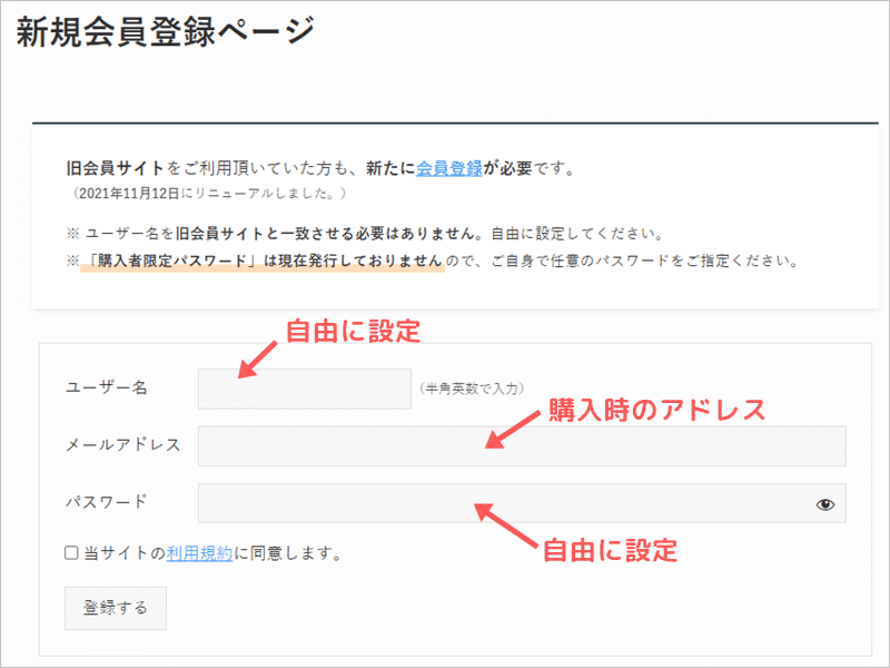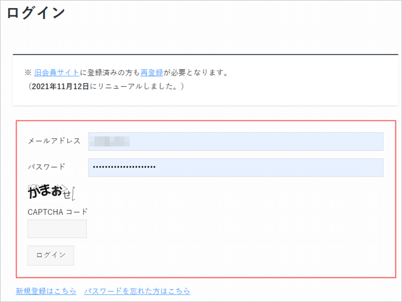登録したら、会員ページにログインします。