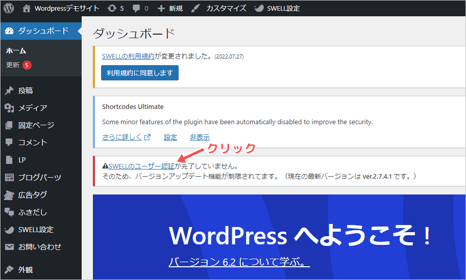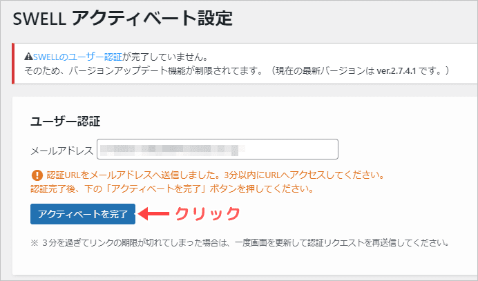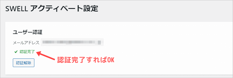 「SWELLのユーザー認証」という部分があるので、クリックして下さい。