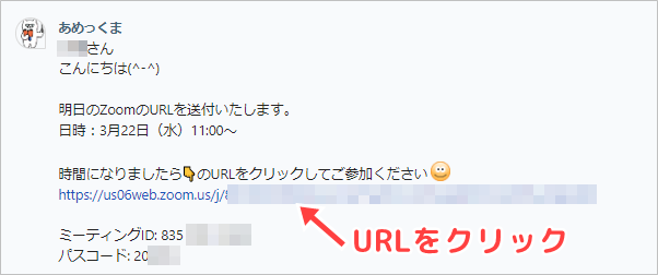 事前にチャットワークで、👇のようなメッセージを送付します。